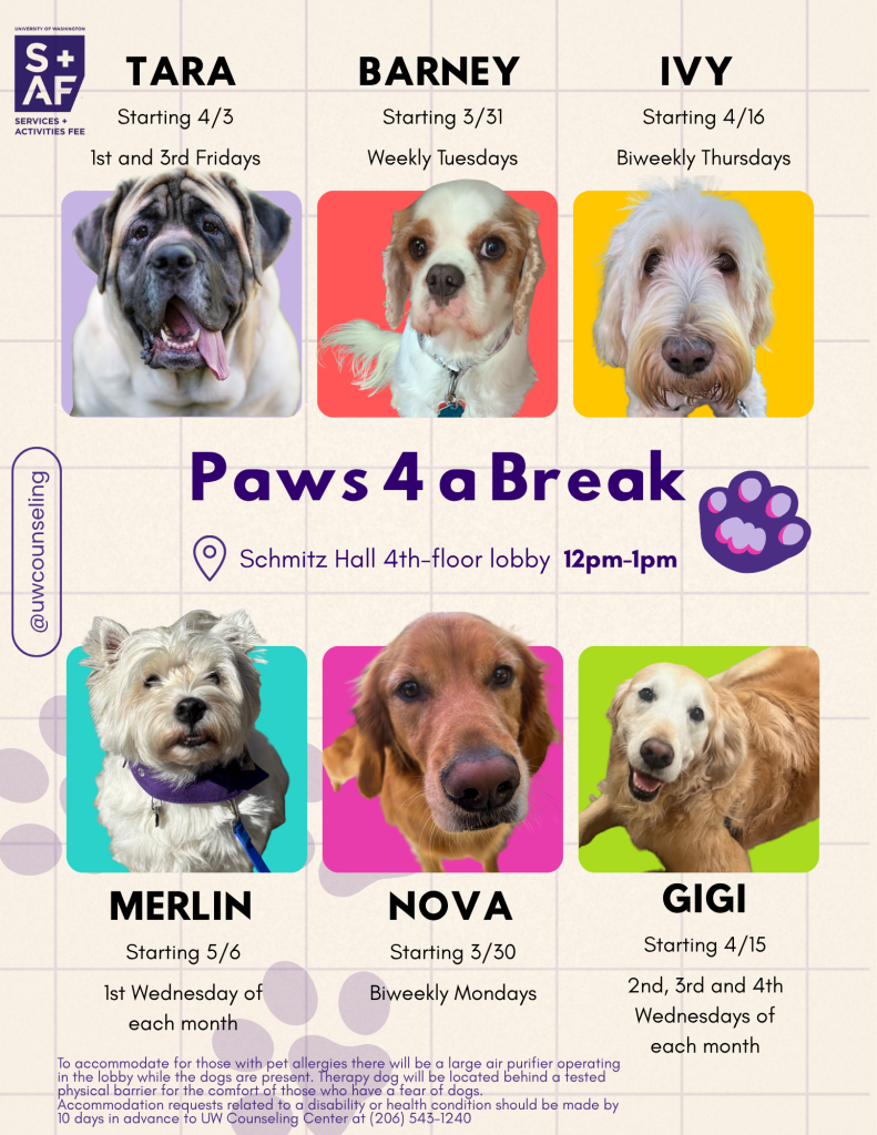 Take a mid-day break, relax, and recharge with some furry friends at PAWS 4 A BREAK: